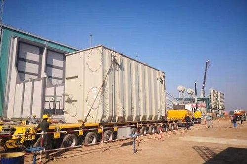 經過長途運輸,換流變運抵拉合爾換流站施工現場