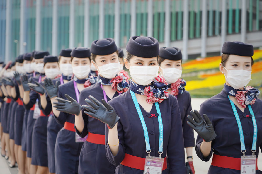 2020年11月(yue)2日,一支整(zheng)齊劃一的靚麗(li)隊伍出現(xian)在上海(hai)(hai)國(guo)家會展(zhan)中心。在第(di)三屆中國(guo)國(guo)際進(jin)口博(bo)覽會開幕前夕,70名東(dong)航凌燕禮(li)儀(yi)志愿者齊集進(jin)博(bo)場(chang)館,再次參(can)與(yu)到進(jin)博(bo)會的各(ge)項(xiang)服(fu)務(wu)保(bao)障工作中。在前兩屆進(jin)博(bo)會上,這些來自(zi)“東(dong)航凌燕禮(li)儀(yi)志愿服(fu)務(wu)隊”的乘務(wu)員以周(zhou)到、細致地(di)服(fu)務(wu),用她們的美麗(li)與(yu)智(zhi)慧,向世界展(zhan)示了東(dong)航品牌、民航精神、上海(hai)(hai)服(fu)務(wu)的魅力。