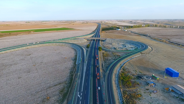 新疆(jiang)S20五克(ke)高速公路(lu)是新疆(jiang)東(dong)聯西出的(de)(de)重要通道,也是中(zhong)國通往中(zhong)亞地區的(de)(de)重要內陸通道。該項(xiang)目的(de)(de)建成通車,將烏(wu)魯木(mu)齊到克(ke)拉瑪依的(de)(de)行(xing)車時間(jian)由3小時縮短(duan)至2小時,為沿線采收長絨棉、葡萄(tao)、哈(ha)密瓜等農(nong)副產品(pin)提供了快捷通道。