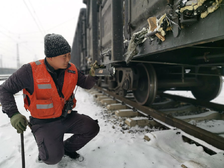 作為近(jin)年(nian)來最冷的一個冬(dong)天,全副武裝(zhuang)的職(zhi)工張志(zhi)新早已(yi)習慣,棉衣棉褲棉鞋,脖(bo)套(tao)線帽皮(pi)手套(tao),披著一身(shen)(shen)戰甲,在沒有風的凌晨,還是凍的瑟(se)瑟(se)發抖。“接車比較冷,一動不動地站著,待會檢修的時(shi)候就渾身(shen)(shen)冒汗(han)了。”等待接車的間隙,他說道。