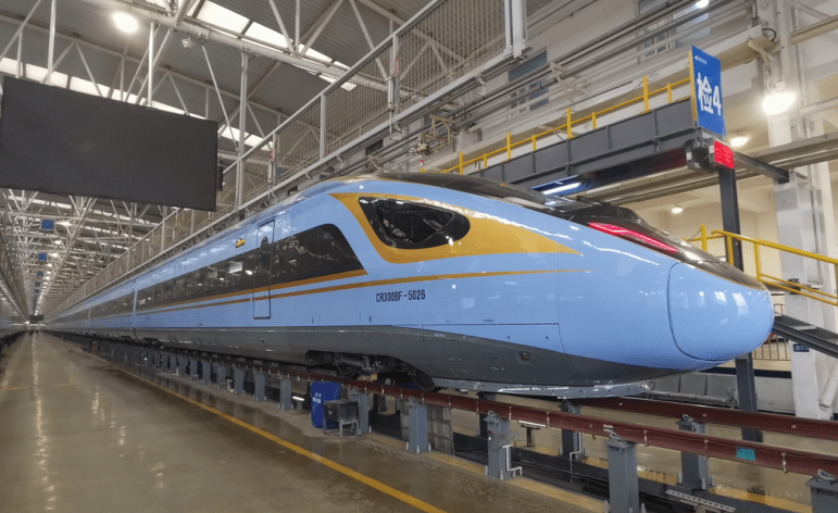 時速(su)(su)250公里CR300BF型“復興(xing)號”動車(che)(che)(che)(che)組(zu)(zu)是具(ju)有(you)完全自(zi)主知識產(chan)權的中(zhong)國(guo)標準(zhun)動車(che)(che)(che)(che)組(zu)(zu)系(xi)列化(hua)產(chan)品之一,采用4動4拖(tuo)8輛編組(zu)(zu),輪周牽引功(gong)率5460kw,最(zui)高運營時速(su)(su)250公里,由中(zhong)車(che)(che)(che)(che)長(chang)春軌道(dao)客車(che)(che)(che)(che)股(gu)份有(you)限(xian)公司和中(zhong)車(che)(che)(che)(che)唐山機(ji)車(che)(che)(che)(che)車(che)(che)(che)(che)輛有(you)限(xian)公司生產(chan)制造。