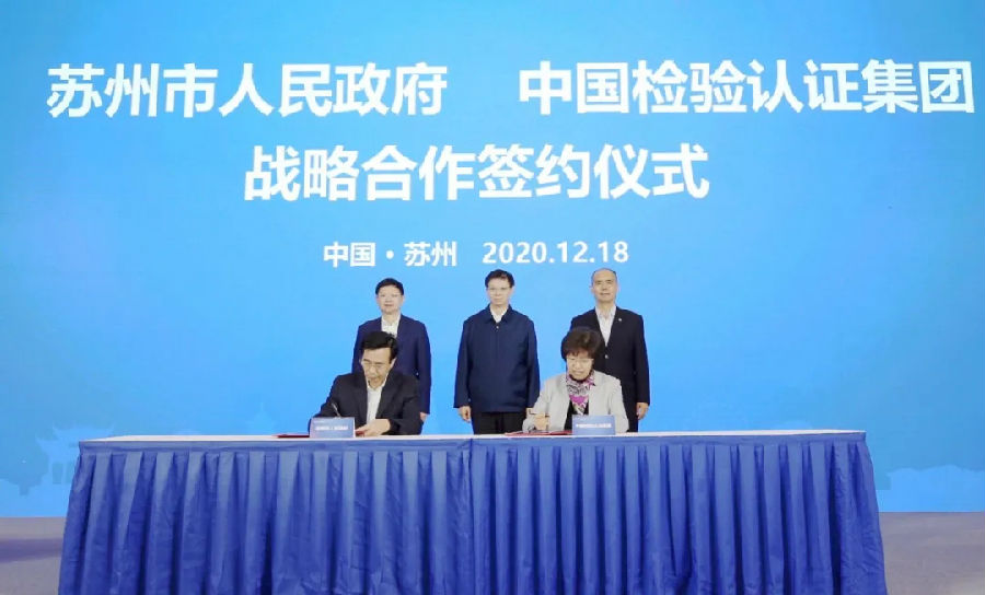 簽(qian)約儀(yi)式上,王翔和陸(lu)梅簽(qian)署(shu)《蘇州(zhou)(zhou)市政府(fu) 中國(guo)檢(jian)驗認(ren)證集團(tuan)關于加強檢(jian)驗檢(jian)測認(ren)證領域戰略(lve)合作協議書(shu)》,許昆林、許增(zeng)德登(deng)臺為(wei)“‘蘇州(zhou)(zhou)制造’品(pin)牌國(guo)際認(ren)證聯盟”和“蘇州(zhou)(zhou)認(ren)證服務(wu)中心(xin)”揭牌。