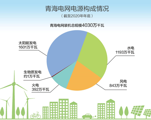 據最新統計(ji),截至2020年底(di),青海電(dian)網(wang)裝(zhuang)(zhuang)機(ji)總規(gui)模達到4030萬千(qian)瓦(wa),其中(zhong)清潔能(neng)(neng)源(yuan)裝(zhuang)(zhuang)機(ji)達3638萬千(qian)瓦(wa),占比超(chao)全網(wang)裝(zhuang)(zhuang)機(ji)總規(gui)模的九成。清潔能(neng)(neng)源(yuan)裝(zhuang)(zhuang)機(ji)中(zhong),太(tai)陽能(neng)(neng)發電(dian)、風電(dian)、生(sheng)物(wu)質發電(dian)等新能(neng)(neng)源(yuan)裝(zhuang)(zhuang)機(ji)共(gong)2445萬千(qian)瓦(wa),占比60.7%;水電(dian)裝(zhuang)(zhuang)機(ji)1193萬千(qian)瓦(wa)。太(tai)陽能(neng)(neng)發電(dian)中(zhong),光伏裝(zhuang)(zhuang)機(ji)1580萬千(qian)瓦(wa),超(chao)過水電(dian),成為青海省第一大電(dian)源(yuan)。