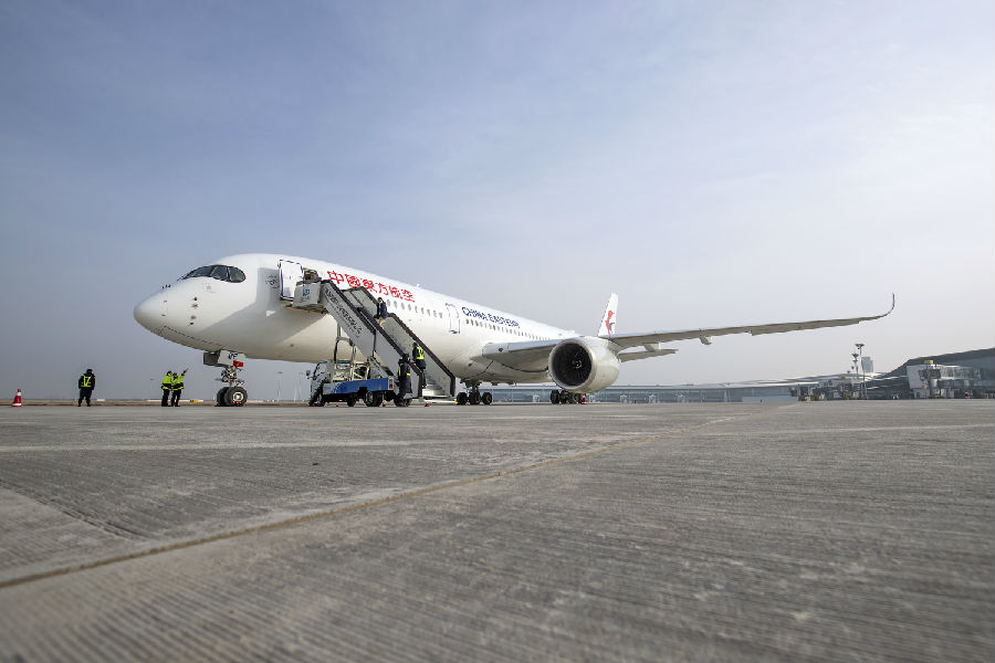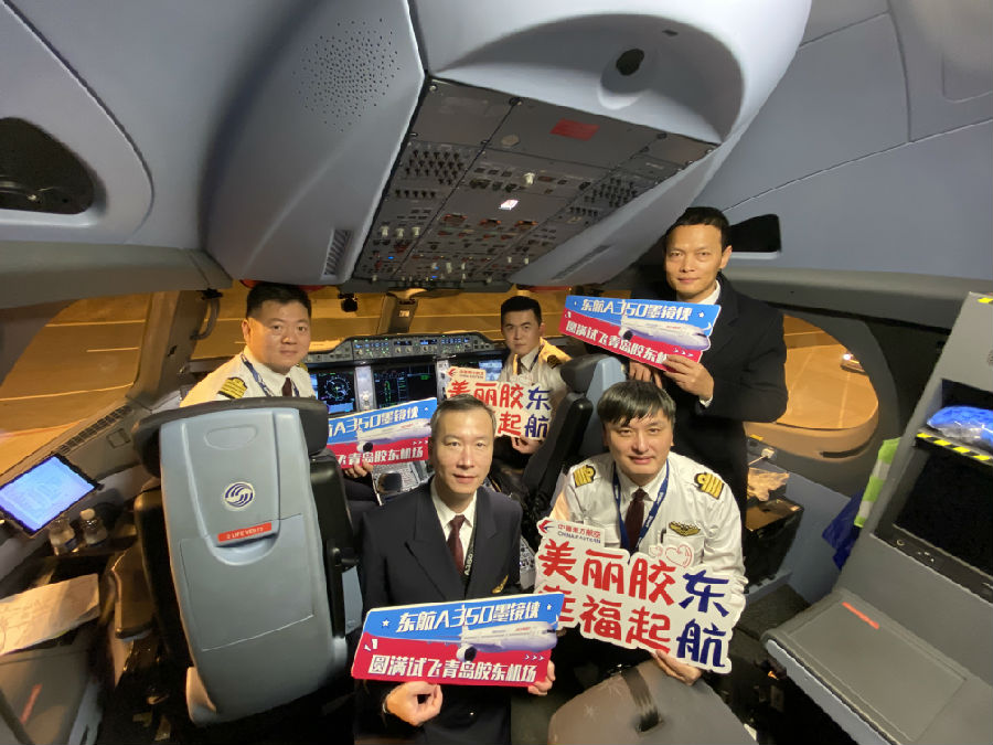近日,東航(hang)派出(chu)全球最先進(jin)的洲(zhou)際(ji)遠程寬(kuan)體客機(ji)(ji)、有著(zhu)“墨鏡俠”之稱(cheng)的A350-900,圓(yuan)滿(man)完(wan)成青島膠東國(guo)際(ji)機(ji)(ji)場(chang)建設工(gong)程的機(ji)(ji)場(chang)試飛任(ren)務(wu)。