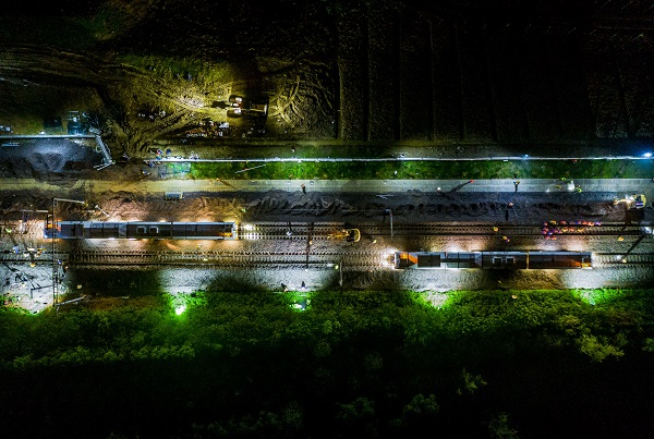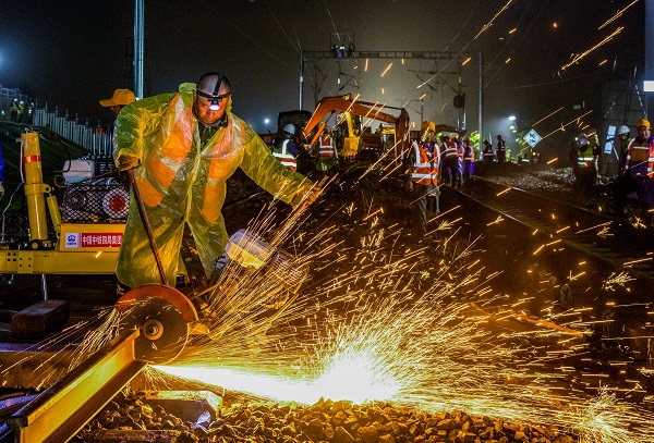 4月26日晚10點(dian)30分(fen),隨著中國鐵路上海(hai)局集(ji)團有限公司(si)東(dong)華地鐵公司(si)現場總指(zhi)揮的(de)一(yi)聲令(ling)下,來自(zi)中鐵四局等單位的(de)土建(jian)、軌道、防護(hu)、精調等多個工(gong)種的(de)1000余(yu)名鐵路建(jian)設者迅速開(kai)展扒除、鋸(ju)軌、線路撥(bo)移(yi)、鋼軌合龍、填(tian)充道碴、大機搗固、開(kai)通試驗等施工(gong)作業。