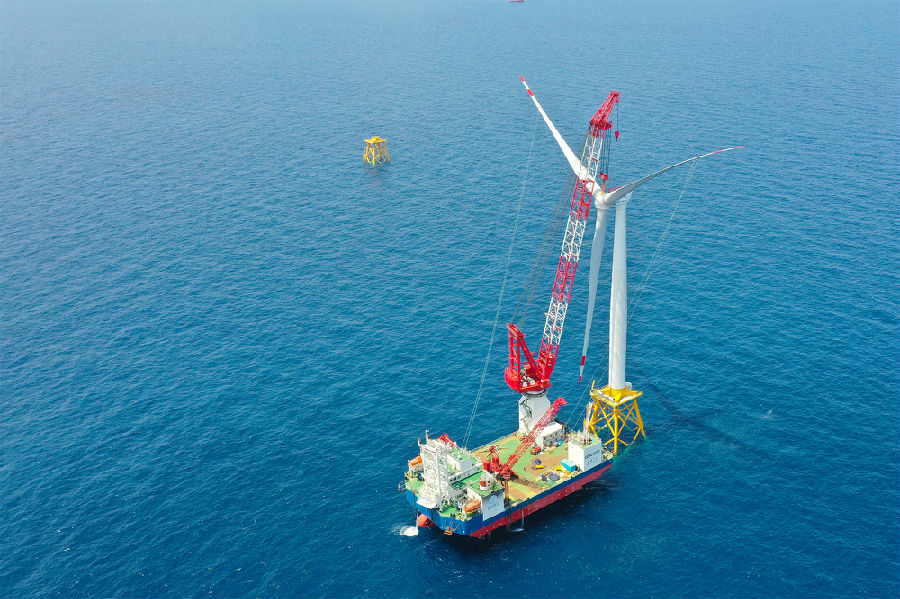 5月6日,由(you)中國能建(jian)廣東院勘察設計、廣東火電(dian)參建(jian)的國內首(shou)(shou)個近海深(shen)水區海上風(feng)電(dian)場——華電(dian)陽江青(qing)洲(zhou)三500兆瓦海上風(feng)電(dian)場完(wan)成首(shou)(shou)臺風(feng)機吊裝(zhuang)。