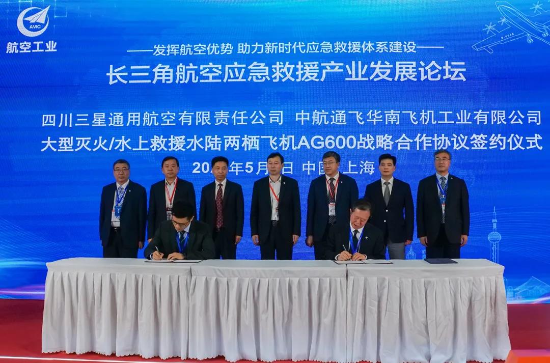 航(hang)空工業(ye)通(tong)飛華南公司與四川三星通(tong)用(yong)航(hang)空有限(xian)責任(ren)公司簽(qian)訂(ding)戰(zhan)略(lve)合作(zuo)協議。根據(ju)協議,雙方將共同助力AG600飛機(ji)西南地區市場開(kai)拓,并為(wei)潛在用(yong)戶提供AG600飛機(ji)托管及飛行服(fu)務。