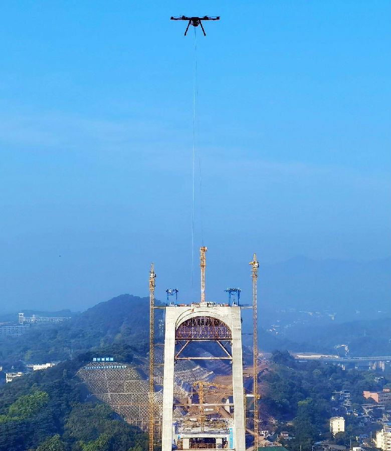 重慶郭家沱長(chang)江大橋(qiao)主跨720米(mi),橫跨長(chang)江黃金水道。為確(que)保先(xian)(xian)導索(suo)過(guo)江施工安全、經濟(ji)以(yi)及(ji)降低對航運影響,項(xiang)目團隊結合施工建(jian)設實際情況(kuang),經多次運用BIM推(tui)演模擬,對多個方(fang)案比(bi)選(xuan)和專家論證,最(zui)終采用無人機牽引(yin)先(xian)(xian)導索(suo)過(guo)江方(fang)法。