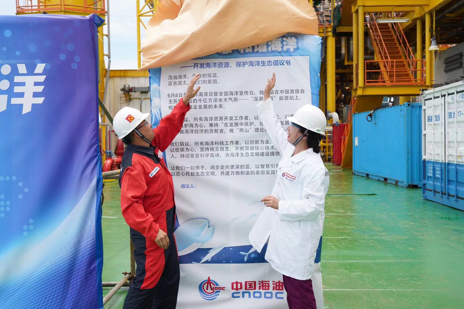 6月8日(ri)(ri),在(zai)距海(hai)(hai)(hai)(hai)南島150公里(li)的(de)(de)瓊東南陵水海(hai)(hai)(hai)(hai)域(yu),來(lai)自新(xin)華(hua)社上(shang)海(hai)(hai)(hai)(hai)分社、浙江省舟山市普(pu)陀區(qu)沈家(jia)門小學(xue)和中(zhong)國(guo)海(hai)(hai)(hai)(hai)油(you)(you)等(deng)不同行業領(ling)域(yu)的(de)(de)海(hai)(hai)(hai)(hai)洋(yang)人物(wu)代表共同登(deng)上(shang)由我(wo)國(guo)自主研(yan)發建造(zao)的(de)(de)全球首座十萬噸級深(shen)水半潛式生產儲油(you)(you)平臺“深(shen)海(hai)(hai)(hai)(hai)一號”能源站,深(shen)入了(le)解我(wo)國(guo)海(hai)(hai)(hai)(hai)洋(yang)石油(you)(you)工業發展(zhan)及深(shen)水油(you)(you)氣(qi)開發情況,并在(zai)世界海(hai)(hai)(hai)(hai)洋(yang)日(ri)(ri)暨(ji)全國(guo)海(hai)(hai)(hai)(hai)洋(yang)宣傳日(ri)(ri)這一天發出了(le)“開發海(hai)(hai)(hai)(hai)洋(yang)資源 保(bao)護海(hai)(hai)(hai)(hai)洋(yang)生態”的(de)(de)倡議。