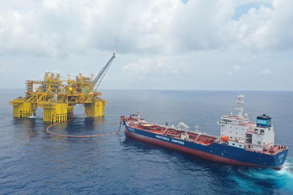 “深海一號”能源站正輸送凝析油到“北海新希望號”。受訪者供圖