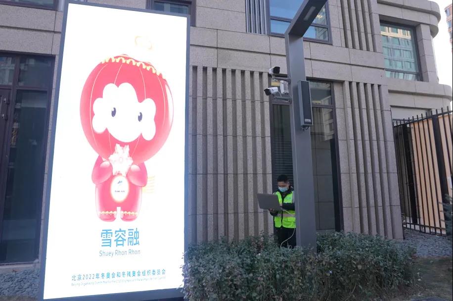 在“明”處(chu),智慧(hui)燈(deng)桿(gan)上(shang)的(de)電子屏、單(dan)元門內的(de)高清顯(xian)示(shi)器(qi)在實時收集(ji)并(bing)記錄當日氣象(xiang)數據的(de)同時,不間斷播(bo)放冬奧會宣傳片,配合燈(deng)桿(gan)上(shang)的(de)冬奧會主題彩旗,以及(ji)隨處(chu)可(ke)(ke)見的(de)冬奧會吉(ji)祥物(wu)的(de)可(ke)(ke)愛形象(xiang),為冬奧村營造極具中國文化(hua)特(te)色的(de)氛圍。冬奧村里懸(xuan)掛了很(hen)多紅燈(deng)籠,顯(xian)示(shi)器(qi)上(shang)的(de)吉(ji)祥物(wu)也換上(shang)了新春(chun)紅裝(zhuang),各國運動(dong)員入住后,可(ke)(ke)感受到傳統“中國年”的(de)魅力。
