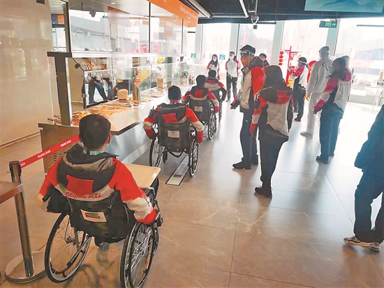 圖為北京冬(殘)奧組委工作人員在冬殘奧村轉換期對各業務領域進行體驗并給予好評。