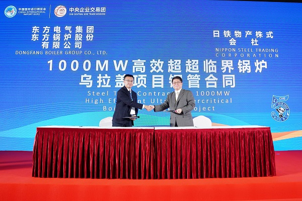東方電(dian)氣集團東方鍋爐(lu)股份有限公司與日鉄物産株(zhu)式會社簽訂1000MW高效超(chao)超(chao)臨界鍋爐(lu)烏拉蓋項(xiang)目鋼(gang)管(guan)采購合(he)同(tong)。雙方將共同(tong)打造穩定供應鏈,實現項(xiang)目高效履約(yue)。