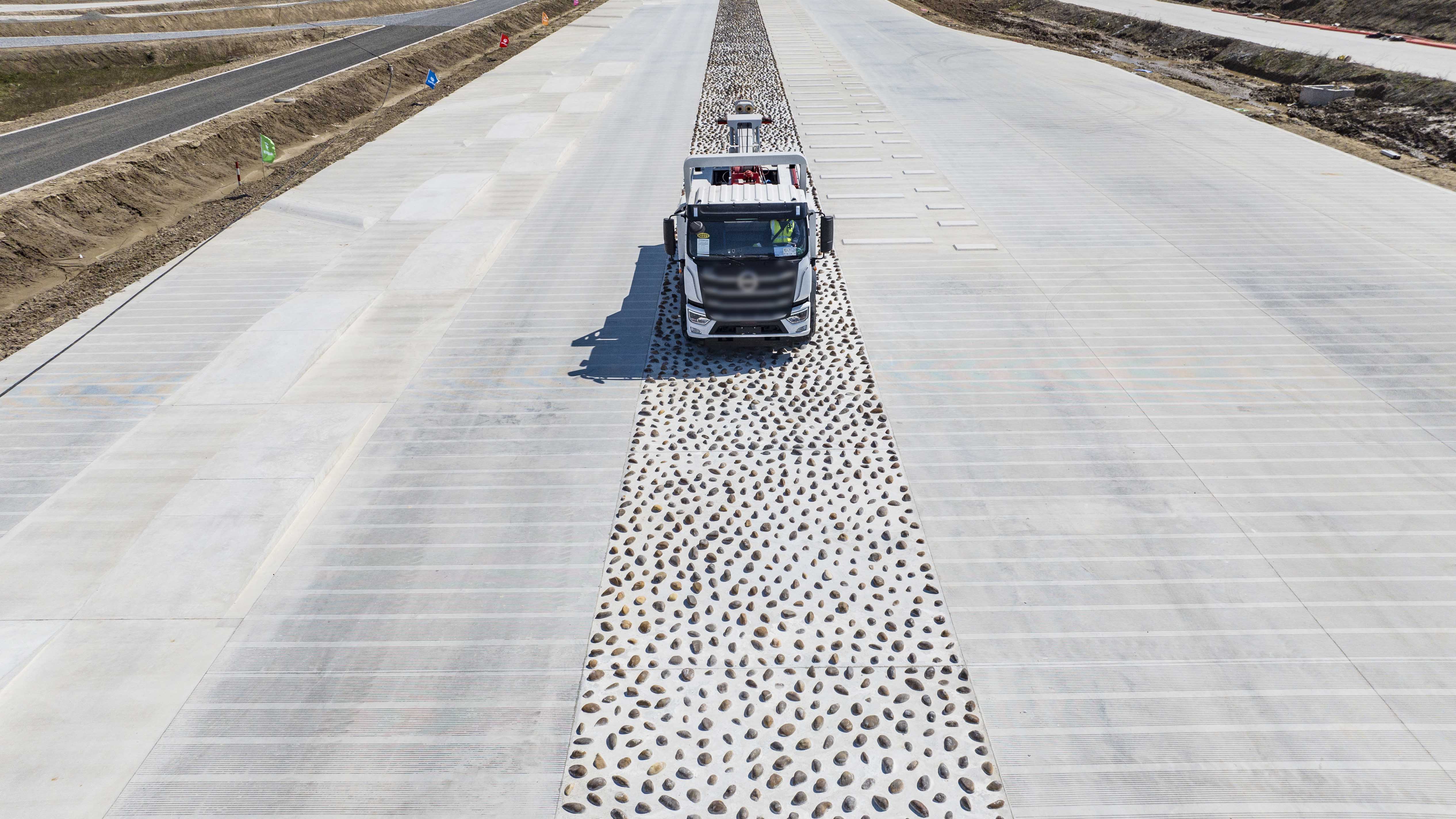 “雖(sui)然面(mian)臨道路(lu)超高(gao)傾角大、三維(wei)空間數據非均勻性(xing)變化、地下水(shui)位(wei)高(gao)、地質(zhi)條件差、基坑跨度大且深、汛(xun)期雨季長、交(jiao)叉作(zuo)業多、施工工藝(yi)復(fu)雜多樣等諸(zhu)多挑戰,但我們仍克服重(zhong)重(zhong)困(kun)難(nan),保質(zhi)保量如期完成(cheng)了(le)建設任(ren)務。”伴隨著項目負(fu)責人鏗鏘有力的(de)(de)話(hua)語,3月(yue)21日,長三角(鹽城)智(zhi)(zhi)能(neng)(neng)網(wang)(wang)聯(lian)智(zhi)(zhi)能(neng)(neng)汽車試驗(yan)場可靠性(xing)試驗(yan)路(lu)迎(ying)來首臺測(ce)(ce)試車輛,這是國內建成(cheng)的(de)(de)第一條既可以進(jin)行(xing)智(zhi)(zhi)能(neng)(neng)網(wang)(wang)聯(lian)汽車可靠性(xing)測(ce)(ce)試,又能(neng)(neng)進(jin)行(xing)重(zhong)型商用車可靠性(xing)試驗(yan)的(de)(de)高(gao)標(biao)準創(chuang)新型測(ce)(ce)試平臺。