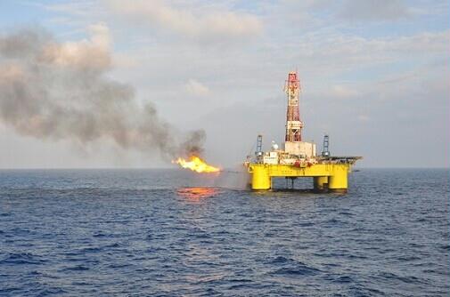 12月16日14時,一條火龍自中國海油“南海九號”右舷燃燒臂噴涌而出,映紅了南中國海的海面,“南海九號”承鉆的首口千米水深井成功點火放噴。