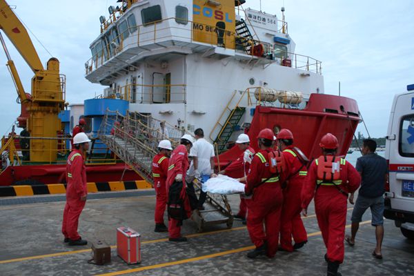 23日(ri),廣(guang)西北海(hai)(hai)與潿(wei)洲(zhou)(zhou)島全(quan)線(xian)停(ting)航的第三天,島上(shang)一名(ming)兒(er)童突發(fa)急(ji)性腦膜炎,急(ji)需(xu)救(jiu)治。潿(wei)洲(zhou)(zhou)終端接(jie)到求(qiu)助后,立即向南(nan)海(hai)(hai)西部石(shi)(shi)油管(guan)(guan)理局(下(xia)稱管(guan)(guan)理局)匯(hui)報,管(guan)(guan)理局要求(qiu)盡一切努力把病人(ren)送(song)至北海(hai)(hai)市治療。18點55分,“海(hai)(hai)洋石(shi)(shi)油564”冒著8級以上(shang)大(da)風和洶涌的海(hai)(hai)浪停(ting)靠潿(wei)洲(zhou)(zhou)終端碼(ma)頭。10分鐘后,病人(ren)被成功運送(song)上(shang)了拖(tuo)輪,急(ji)速駛往北海(hai)(hai)。