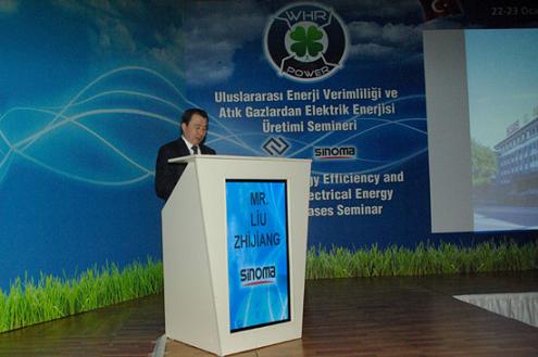 在(zai)22日(ri)舉行(xing)的(de)(de)開(kai)(kai)幕儀式(shi)上,中(zhong)材(cai)(cai)集團總經理劉志江代(dai)表中(zhong)材(cai)(cai)集團致開(kai)(kai)幕詞并發(fa)(fa)(fa)表演講(jiang)。他指出(chu),中(zhong)土(tu)兩國人民的(de)(de)友誼源(yuan)遠流長,土(tu)耳(er)其目前已發(fa)(fa)(fa)展(zhan)成為世界新(xin)(xin)興經濟(ji)體,水泥等行(xing)業的(de)(de)節能(neng)(neng)減(jian)排(pai)產業也取得很(hen)大發(fa)(fa)(fa)展(zhan),中(zhong)土(tu)兩國在(zai)節能(neng)(neng)減(jian)排(pai)領域的(de)(de)經貿合(he)(he)作有(you)著巨大發(fa)(fa)(fa)展(zhan)潛力。此次推介會的(de)(de)舉行(xing),旨在(zai)加深土(tu)耳(er)其及周邊國家的(de)(de)企(qi)業加大對中(zhong)材(cai)(cai)集團、中(zhong)材(cai)(cai)節能(neng)(neng)余熱發(fa)(fa)(fa)電(dian)技(ji)(ji)術(shu)的(de)(de)了解,加強交流溝(gou)通,積極開(kai)(kai)展(zhan)各種形式(shi)的(de)(de)、互利雙贏的(de)(de)經濟(ji)技(ji)(ji)術(shu)合(he)(he)作,為中(zhong)土(tu)經貿合(he)(he)作的(de)(de)發(fa)(fa)(fa)展(zhan)做(zuo)出(chu)新(xin)(xin)的(de)(de)貢獻。