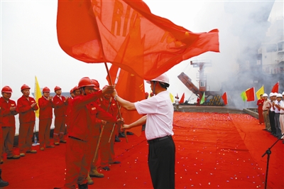 7月17日,江蘇揚州港1號碼頭彩旗飄揚,由華東石油局、華東分公司組織的赴敘利亞項目鉆井隊舉行出征儀式。中國石化敘利亞石油工程技術服務承包項目由國際工程公司總承包,華東石油局和江蘇油田共五支鉆井隊聯合承擔日費制鉆井施工。圖為鉆井隊出征儀式現場。