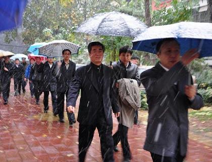 前來吊唁的中國航天的代表,默默地排隊,輪流走進靈堂,悼念錢老。