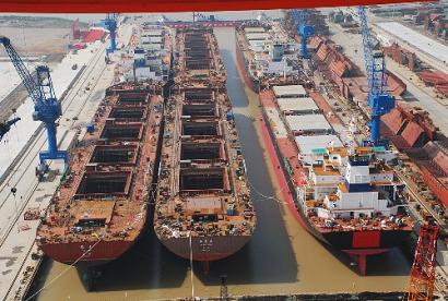 中國海運江蘇造船基地新造散貨船命名下水