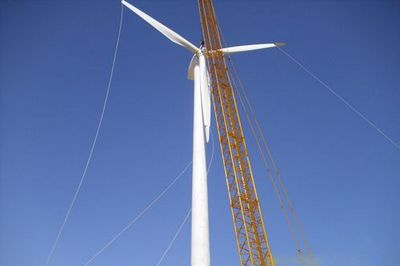 該風電場一期工程包括一標段30臺780千瓦型風電機組、二標段24臺1000千瓦型、1臺2000千瓦型風電機組,共計55臺。中國十七冶集團項目部僅用35天時間即安裝完成30臺風機。6月6日,二標段25臺風機已開始安裝。