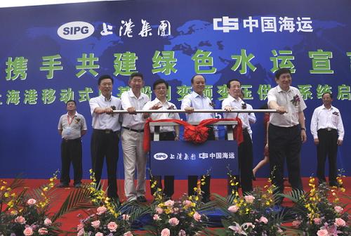 2010年7月5日,中國海運與上港集團聯合舉辦的“港航攜手共建綠色水運宣言發布暨移動式岸基船用變頻變壓供電系統啟用儀式”在上海港外高橋港區二期碼頭舉行,交通運輸部徐祖遠副部長、上海市沈駿副市長、中國海運李紹德總裁和上海國際港務集團陸海祜董事長出席儀式并致辭,并與上海市政協朱曉明副主席共同為中海集裝箱運輸股份有限公司的“新常熟”輪啟動岸基供電系統。