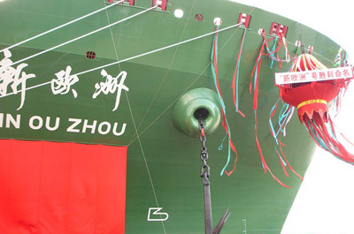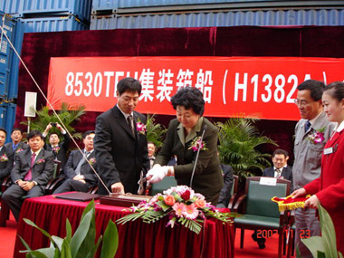 2007年11月23日下午(wu),由中海集裝(zhuang)箱(xiang)運(yun)輸股份有限公(gong)司委托建造(zao)的8530TEU大型集裝(zhuang)箱(xiang)船“新歐(ou)洲(zhou)”輪的命名(ming)交船儀式在(zai)上海滬東中華(hua)造(zao)船廠(chang)內舉(ju)行。