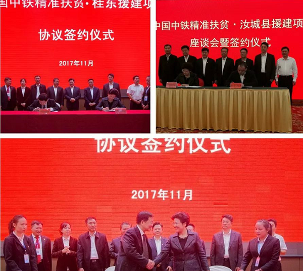 中國中鐵工會主席劉建媛代表公司與各方簽署精準扶貧援建協議