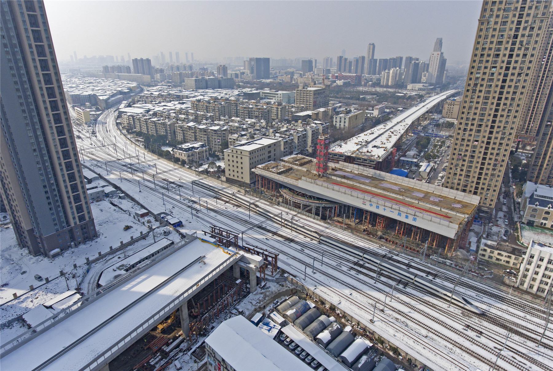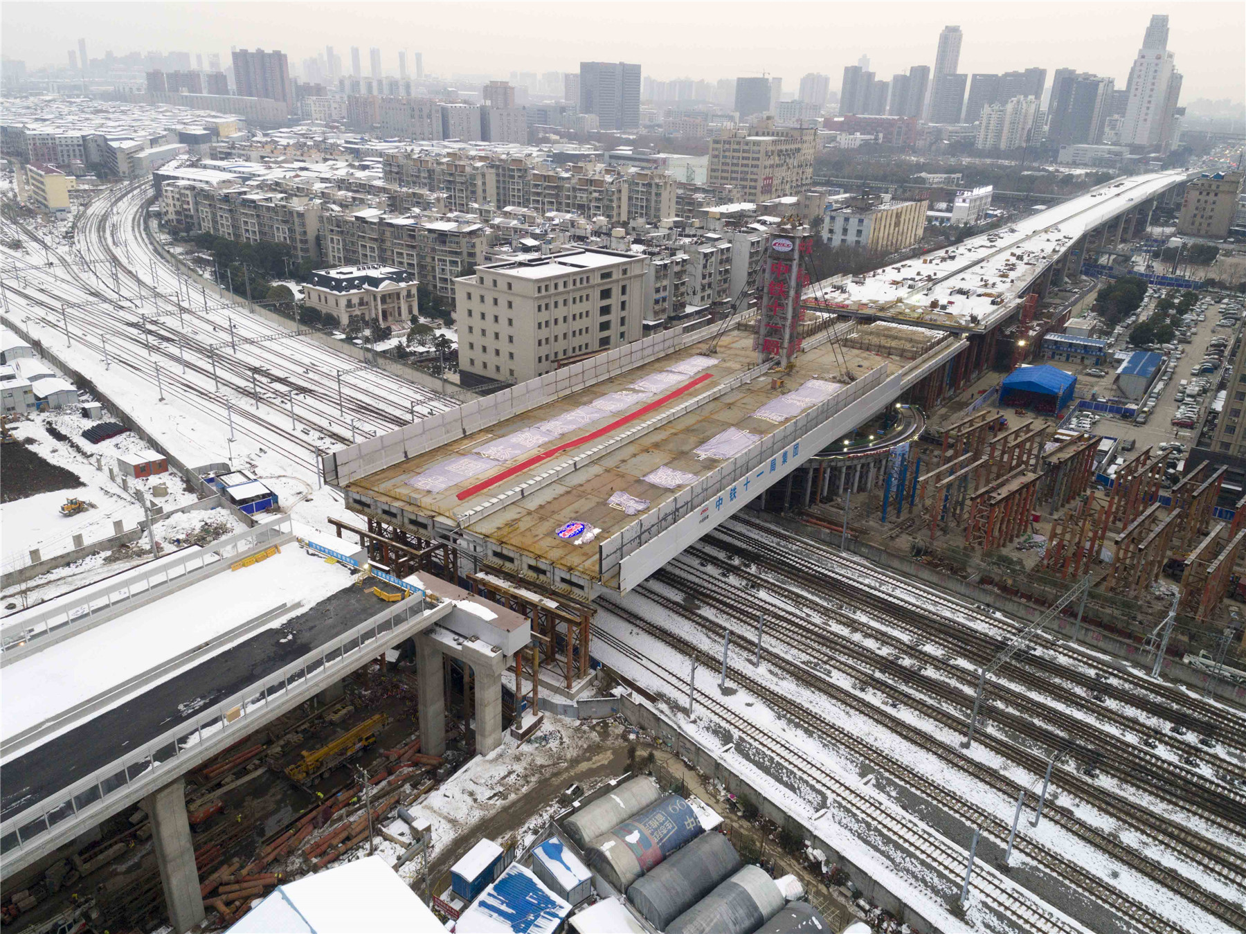 漢口(kou)火車站每天有(you)近600趟列車經(jing)過,為(wei)減(jian)少橋(qiao)梁施(shi)工對既有(you)鐵(tie)路的(de)干擾(rao),保證鐵(tie)路運行安全平穩(wen),建(jian)(jian)設(she)(she)者采取‘先(xian)建(jian)(jian)后轉’工藝,先(xian)沿著鐵(tie)路平行方(fang)向(xiang)建(jian)(jian)設(she)(she)橋(qiao)體,再(zai)將建(jian)(jian)好(hao)的(de)橋(qiao)體按順時針(zhen)方(fang)向(xiang)轉體至設(she)(she)計(ji)位置(zhi)。