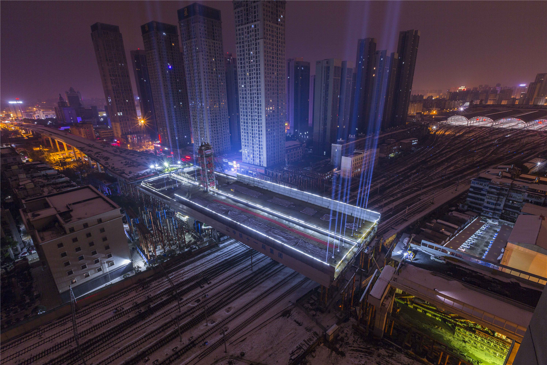1月31日凌晨3時4分,由中(zhong)國鐵(tie)(tie)建所屬(shu)中(zhong)鐵(tie)(tie)十一(yi)局二公司承建的武漢(han)市常青路主線轉體(ti)(ti)橋歷時103分鐘順(shun)時針轉動(dong)81度(du),跨(kua)越漢(han)口火車站(zhan)西咽喉岔區9股道,與引(yin)橋實(shi)現精準對接,順(shun)利(li)合龍,刷新了轉體(ti)(ti)最(zui)不平衡、轉體(ti)(ti)橋面(mian)最(zui)寬、跨(kua)越特等站(zhan)鐵(tie)(tie)路股道數最(zui)多(duo)三項(xiang)轉體(ti)(ti)橋世界紀(ji)錄(lu)。