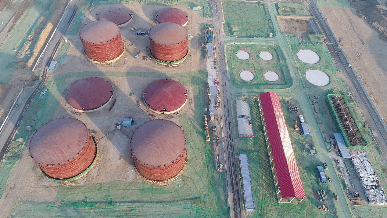 近日,北京新機場(chang)油(you)庫4座(zuo)20000立(li)方米(mi)儲罐(T101、T102、T105、T106)主體安裝順利(li)完(wan)工(gong)(gong),如期(qi)推進北京新機場(chang)航(hang)油(you)工(gong)(gong)程(cheng)建設再次取得階段性(xing)成(cheng)果。