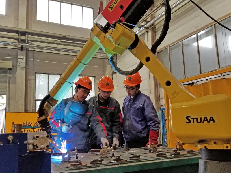 為提高(gao)自(zi)(zi)動(dong)(dong)化焊(han)接(jie)(jie)(jie)水平(ping),提升產(chan)品(pin)(pin)質(zhi)量,航(hang)天(tian)晨光股(gu)份有限公(gong)司所屬南京晨光森田環保科技有限公(gong)司結合自(zi)(zi)身需求及(ji)產(chan)品(pin)(pin)結構特點,自(zi)(zi)主設計產(chan)品(pin)(pin)自(zi)(zi)動(dong)(dong)化焊(han)接(jie)(jie)(jie)方案及(ji)配套工藝(yi)裝備。近日,首臺焊(han)接(jie)(jie)(jie)機器(qi)人(ren)正式(shi)投入生產(chan)后,實(shi)現了(le)壓縮(suo)式(shi)垃(la)圾車部分中小部件的(de)穩定批量生產(chan),綜(zong)合生產(chan)效(xiao)率(lv)相比手工焊(han)接(jie)(jie)(jie)提升50%以上,為進一步提升公(gong)司自(zi)(zi)動(dong)(dong)化焊(han)接(jie)(jie)(jie)水平(ping)打下了(le)堅實(shi)的(de)基礎。