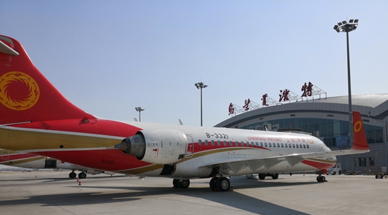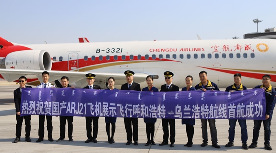 ARJ21-700飛機(ji)首(shou)次在(zai)內蒙古開展航(hang)線(xian)展示運營