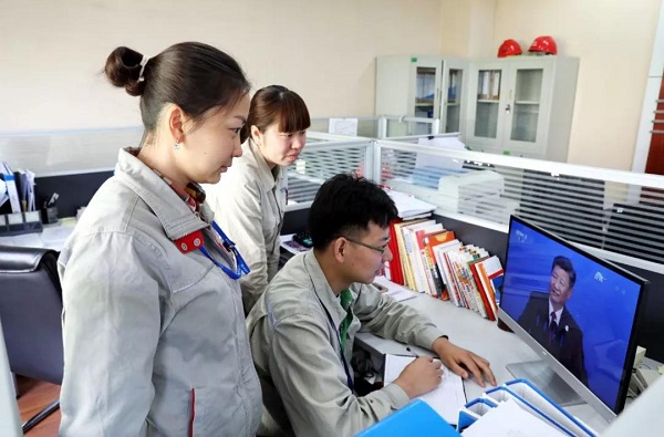 國(guo)投國(guo)際貿易(yi)有限公司員工收看習主席主旨演(yan)講。