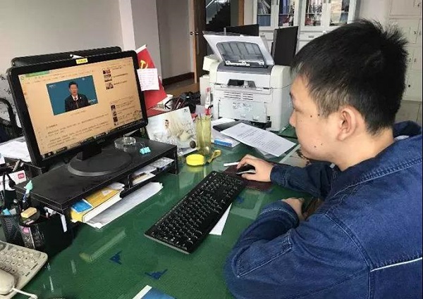 中國電信湖(hu)州分公司收看(kan)習(xi)主(zhu)席主(zhu)旨演講。