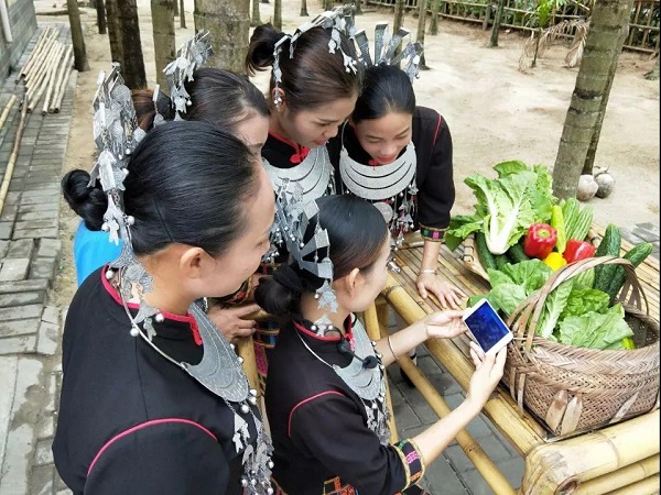 華僑城海南(nan)集團(tuan)下屬中廖(liao)村(cun)項目(mu)的五名黎族演員利用手(shou)機收看(kan)習主席講話。