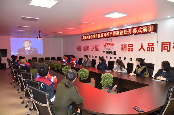 中國鐵(tie)建(jian)莫(mo)斯科地鐵(tie)項目員工在當地凌晨(chen)集(ji)體在線觀看直(zhi)播。習主席強調“中國開放的大門不會關閉(bi),只會越開越大”,鼓(gu)舞著(zhu)代表中國地鐵(tie)走(zou)進歐洲的中國建(jian)設者(zhe)。