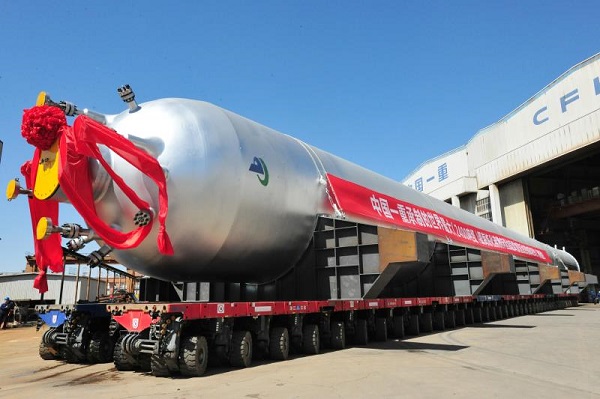 2018年4月11日,由中(zhong)國(guo)(guo)(guo)一(yi)重承制(zhi)的(de)世界最大(da)(da)石(shi)化(hua)技(ji)術(shu)裝備(bei)(bei)---鎮(zhen)海(hai)沸騰床渣油鍛焊加氫反應器在大(da)(da)連核電石(shi)化(hua)公司完工發(fa)運。該(gai)裝備(bei)(bei)的(de)成功(gong)制(zhi)造標志(zhi)著我國(guo)(guo)(guo)超(chao)大(da)(da)噸位石(shi)化(hua)裝備(bei)(bei)制(zhi)造技(ji)術(shu)再(zai)次領跑國(guo)(guo)(guo)際,彰顯了(le)“大(da)(da)國(guo)(guo)(guo)重器”的(de)實力。同時(shi),為(wei)中(zhong)國(guo)(guo)(guo)石(shi)化(hua)產業的(de)蓬勃發(fa)展增添了(le)新的(de)動(dong)能。