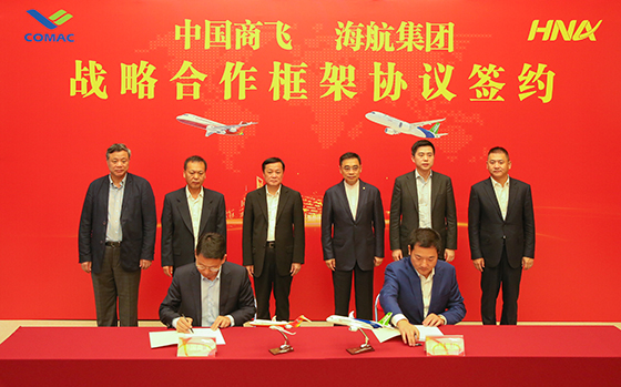 2018年6月2日,中國商飛公司與海航(hang)(hang)集團(tuan)簽署(shu)戰(zhan)略合(he)作框架協議,雙(shuang)方(fang)將在飛機采購(gou)和運(yun)行、航(hang)(hang)空(kong)市(shi)場(chang)開拓、航(hang)(hang)空(kong)維修與客戶服務等領域全(quan)面(mian)合(he)作,共同推進國產民機市(shi)場(chang)化、規模化經(jing)營。