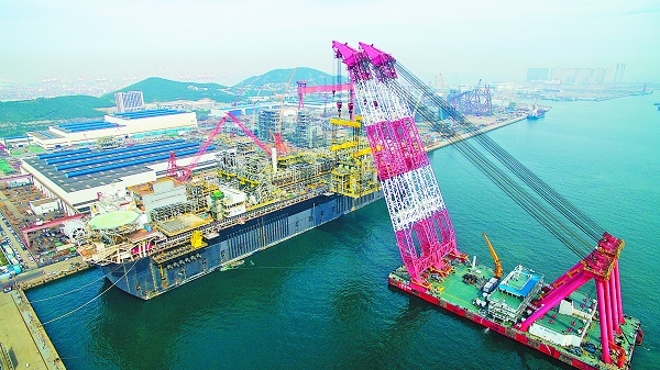 日前(qian),四建公(gong)司(si)參建的(de)巴西(xi)國家(jia)石(shi)油(you)公(gong)司(si)浮式生產儲油(you)卸油(you)裝(zhuang)(zhuang)置(zhi)(FPSO)完(wan)工出海。FPSO是(shi)一(yi)套集煉化裝(zhuang)(zhuang)置(zhi)和生活區(qu)于一(yi)體的(de)大型裝(zhuang)(zhuang)備(bei),可(ke)對原油(you)進(jin)行初步加(jia)工并儲存,船身總(zong)長307米、寬74米、重8萬噸,排水量是(shi)“遼(liao)寧號”航母的(de)5倍,是(shi)目前(qian)國內承接(jie)的(de)工程(cheng)量最(zui)大、最(zui)復雜、技術要(yao)求最(zui)高的(de)海上(shang)超級工程(cheng),被(bei)稱為“海上(shang)石(shi)油(you)加(jia)工廠”。