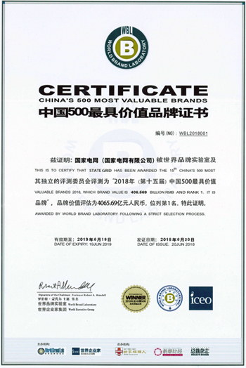 6月(yue)20日,由(you)世界(jie)經理人集團(World Executive Group)、世界(jie)品(pin)(pin)(pin)牌(pai)實驗室(World Brand Lab)聯合主辦的2018年(nian)(第十五屆)世界(jie)品(pin)(pin)(pin)牌(pai)大會(hui)在京舉行。會(hui)上發布2018年(nian)《中國(guo)(guo)500最具價(jia)值(zhi)品(pin)(pin)(pin)牌(pai)》排行榜(bang),國(guo)(guo)家電(dian)網品(pin)(pin)(pin)牌(pai)以4065.69億(yi)元(yuan)的價(jia)值(zhi)蟬聯榜(bang)首(shou),品(pin)(pin)(pin)牌(pai)價(jia)值(zhi)較(jiao)上年(nian)增(zeng)長766.82億(yi)元(yuan),連(lian)續(xu)12年(nian)攀升(sheng)。這是國(guo)(guo)家電(dian)網品(pin)(pin)(pin)牌(pai)連(lian)續(xu)三年(nian)位居該(gai)榜(bang)榜(bang)首(shou)。