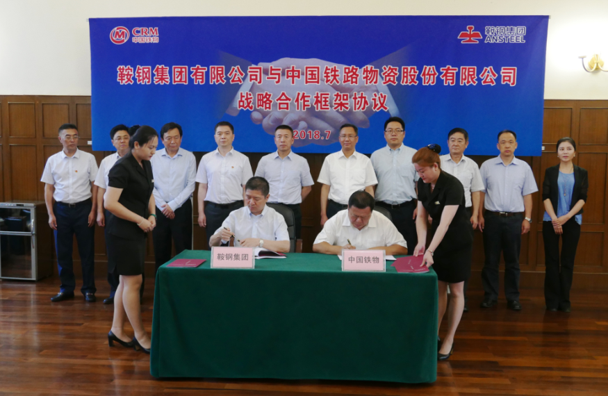 中國鐵物總裁申兆軍和鞍鋼集團總經理姚林代表雙方簽署戰略合作協議
