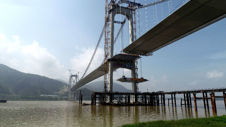 云浮西江特(te)(te)大橋(qiao)(qiao)是清(qing)云高(gao)速(su)規(gui)模(mo)最大、建設條件最復(fu)雜、技術(shu)難度(du)最高(gao)的(de)特(te)(te)大橋(qiao)(qiao)工(gong)程。主橋(qiao)(qiao)為雙(shuang)塔雙(shuang)跨(kua)吊(diao)鋼箱梁(liang)懸(xuan)索橋(qiao)(qiao),邊跨(kua)長(chang)202米(mi),主跨(kua)長(chang)738米(mi),橋(qiao)(qiao)面(mian)寬30米(mi),采用雙(shuang)向六車道標(biao)準建設。施工(gong)過程中(zhong)(zhong),設計(ji)團隊(dui)通(tong)過充分(fen)研究,創新性地提(ti)出將錨(mao)錠置于路面(mian)以上(shang),車輛(liang)從錨(mao)體中(zhong)(zhong)通(tong)過的(de)“通(tong)道錨(mao)”設計(ji),減少挖方9萬方,極(ji)大降低了對(dui)環境的(de)破壞(huai),同時是國內首次在(zai)全橋(qiao)(qiao)頂(ding)板上(shang)使用U肋機(ji)器人自動內焊(han)技術(shu),大幅(fu)提(ti)高(gao)橋(qiao)(qiao)面(mian)板焊(han)趾處抗疲(pi)勞性能(neng),降低橋(qiao)(qiao)梁(liang)壽命周期內的(de)維護(hu)成本。