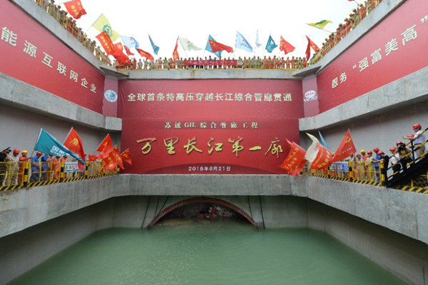 8月21日9時許,長江(jiang)北岸,江(jiang)蘇南通,巨(ju)大的“卓越號”盾構(gou)機(ji)翻卷著泥漿駛出過江(jiang)隧(sui)道。這一(yi)刻,1000千(qian)伏(fu)淮南—南京(jing)—上海交流(liu)特高壓輸變電工程蘇通GIL(氣體絕緣輸電線路(lu))綜(zong)合管廊(lang)隧(sui)道工程貫通。