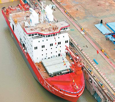 9月10日,我國首艘自主建造的極地(di)科學考察破冰船(chuan)“雪龍2”號在上海下水。 新華社記者 劉詩平攝(she)
