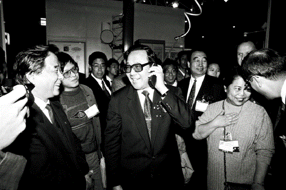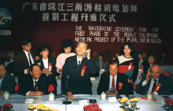 1987 年11月18日(ri),在(zai)全國第六屆運動(dong)會(hui)召開前夕(xi), 原郵電(dian)部(bu)部(bu)長(chang)楊泰芳(fang)在(zai)工程開通儀式上撥(bo)通移動(dong)電(dian)話