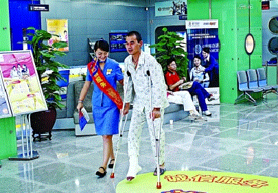中國移動(dong)營業廳(ting)員(yuan)工幫助行(xing)動(dong)不便的客戶