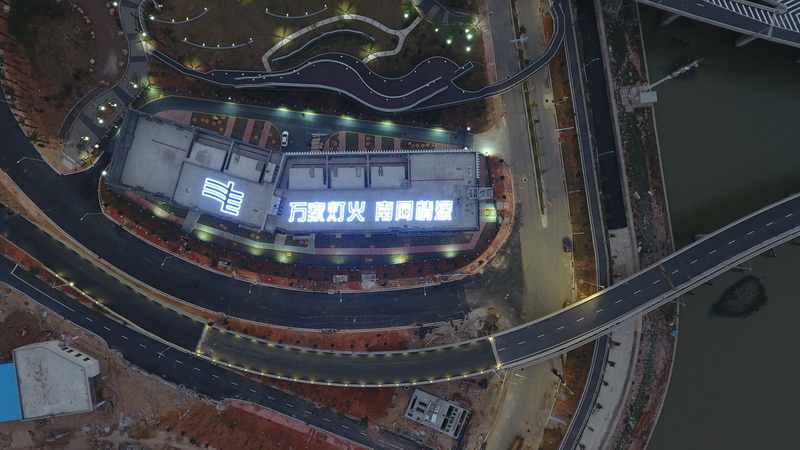 夜(ye)幕下的港(gang)珠澳大橋人工島變電站(zhan)高空(kong)俯(fu)瞰圖
