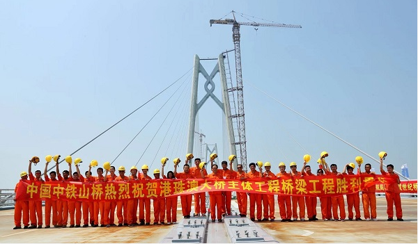 中(zhong)(zhong)鐵山橋所(suo)承(cheng)建的(de)港珠澳大橋青州(zhou)航道(dao)橋為雙(shuang)塔雙(shuang)索(suo)(suo)面(mian)鋼箱梁斜(xie)拉(la)橋,最(zui)(zui)大跨度達458米,主塔高(gao)度達163米,是港珠澳大橋跨度最(zui)(zui)大、主塔最(zui)(zui)高(gao)的(de)通航孔(kong)橋。兩座索(suo)(suo)塔為H型框架(jia)塔,索(suo)(suo)塔上橫(heng)梁采(cai)用“中(zhong)(zhong)國結”造(zao)型。