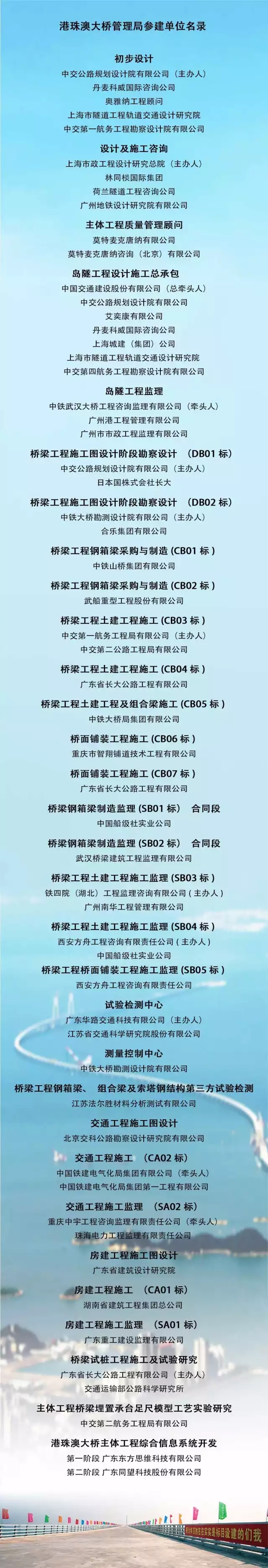 港珠澳(ao)大(da)橋參建單位(wei)名單